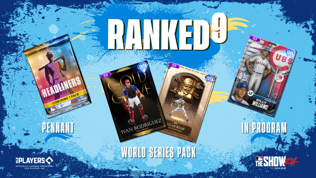 Complete Solo & Co-Op Ranked Stat Missions in the Ranked 9 Program to earn Action Figure Series Billy Williams (99 OVR) at 75 Stars. Increase your rating to reach the World Series division or earn 100 Program Stars to get your mitts on the World Series Reward Choice Pack and choose from Awards Series Ivan Rodriguez (99 OVR) and Hall of Fame Series Nolan Ryan (99 OVR).