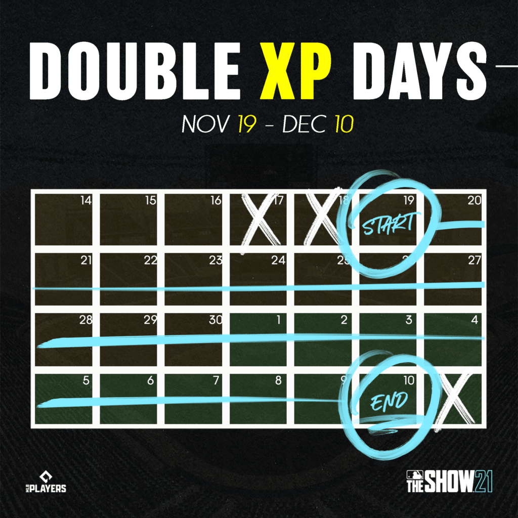Earn twice the XP from gameplay towards the 9th Inning Program during Double XP Days starting today and running until December 10th at 11:00 AM PT.