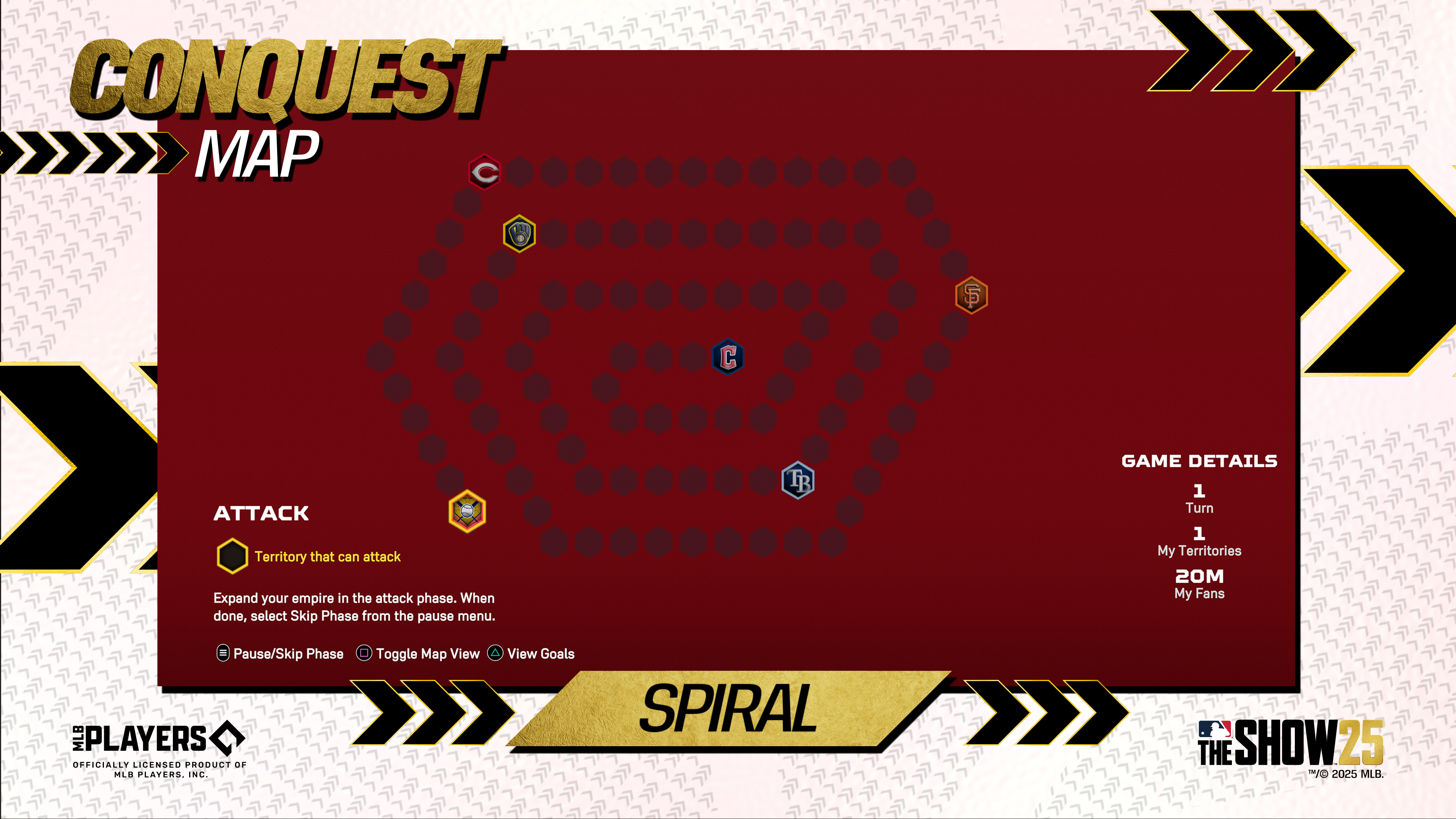 The all-new Spiral Map, available in MLB The Show 25, is enough to make anyone dizzy with delight. Take turns attacking territories, stealing your opponents’ fans, reinforcing your territories, and moving your fans to take control of the Spiral Map and earn rewards including XP, Packs, and more.
