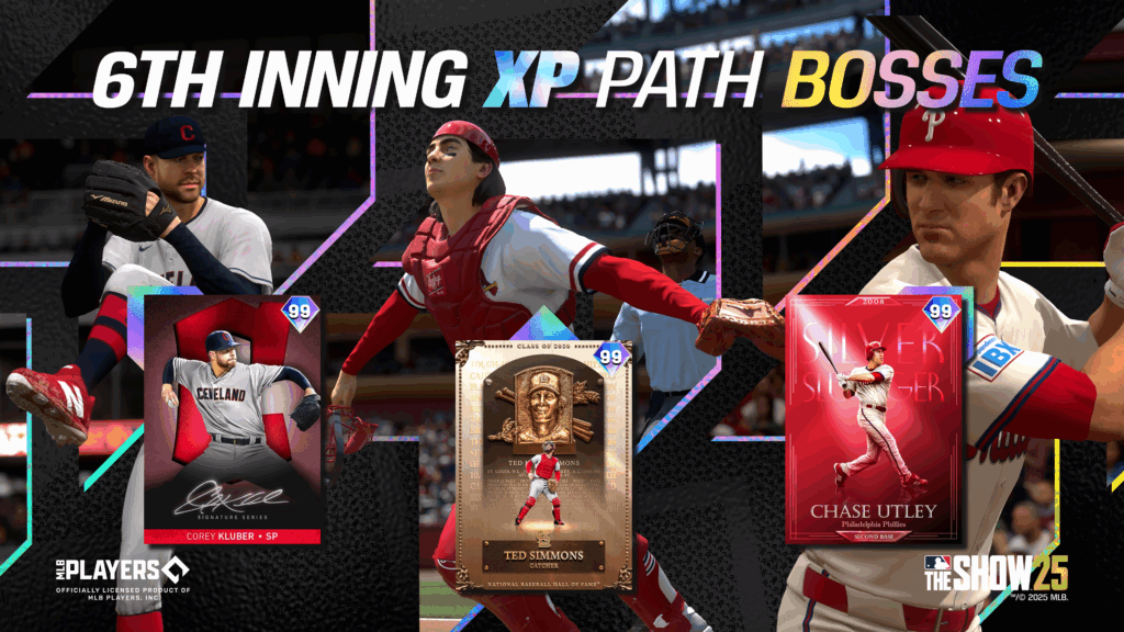 Earn all-new rewards including Stubs, Packs, and player items including the in-path Awards Series Kyle Seager (98 OVR) and 6th Inning Bosses – Awards Series Chase Utley (99 OVR), Signature Series Corey Kluber (99 OVR), and Hall of Fame Series Ted Simmons (99 OVR) in the 6th Inning XP Reward Path. Play any mode in MLB The Show 25 to gain XP and start progressing through the 6th Inning XP Reward Path today to add these rewards to your Diamond Dynasty squad.