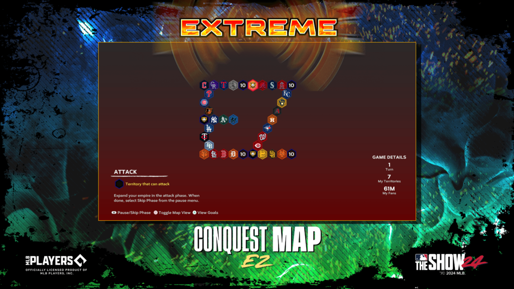 This Conquest Map is anything but “EZ” so be sure to keep that in mind as you take turns attacking territories, stealing your opponents’ fans, reinforcing your territories, and moving your fans to control the Extreme Conquest Map to earn Packs, Stubs, and continued advancement in the Extreme Program.