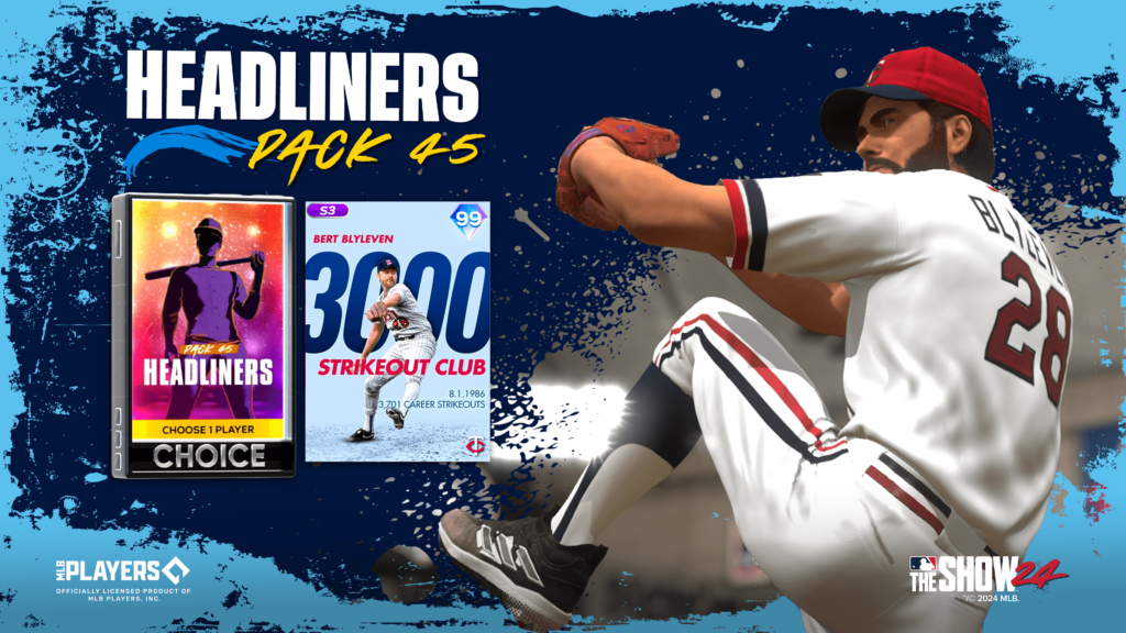 The Headliners 45 Choice Pack features a 2-time All-Star, 2-time World Series Champion and member of the prestigious “3000 Strikeout Club” in Milestone Series Bert Blyleven. Available today, the Headliners 45 Choice Pack can be found in the Show Shop for 35,000 Stubs and is limited to 3 packs per account.