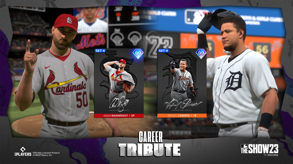 The Career Tribute Program, available today in MLB The Show 23, pays tribute to the careers of two stars set to retire after this season. Signature Series Adam Wainwright (99 OVR) and Signature Series Miguel Cabrera (99 OVR) are sure to make any Diamond Dynasty squad formidable.