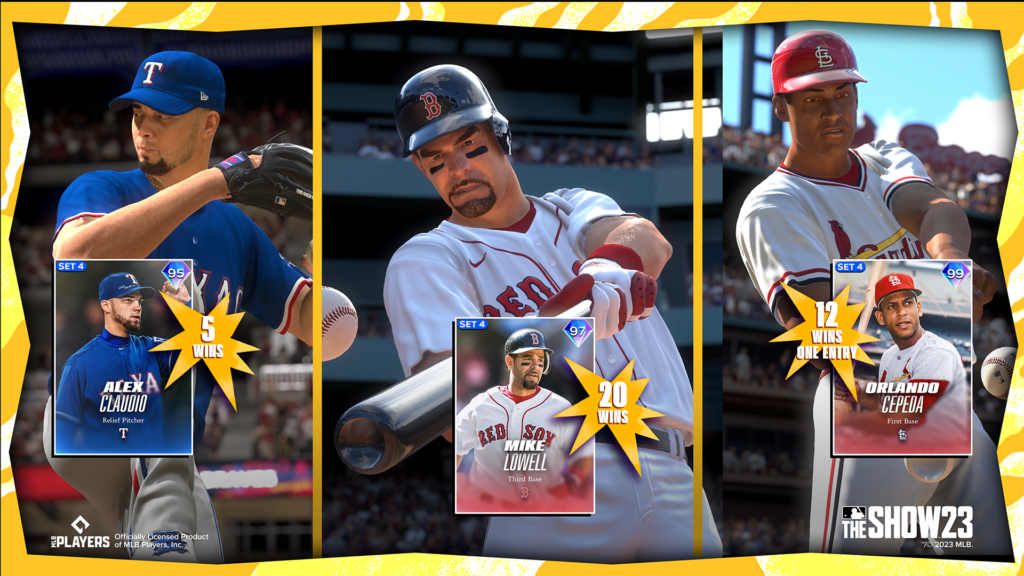 Win games in the Roberto Clemente Day Event to add more Boricua ballplayers to your lineup with Charisma Alex Claudio (95 OVR) at 5 wins, Charisma Mike Lowell (97 OVR) at 20 wins, and Charisma Orlando Cepeda for earning 12 wins in one entry (12-1 or 12-0) before double elimination.