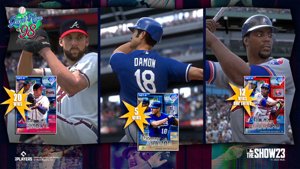 The Great Race of ’98 Event is a great way to earn even more player rewards and earn PXP with Monthly Awards and Topps Now players. Earn GR98 Johnny Damon (95 OVR) at 5 wins and GR98 John Smoltz (97 OVR) at 20 wins, and GR98 Series Vladimir Guerrero (99 OVR) for earning 12 wins in one entry (12-1 or 12-0) before double elimination.