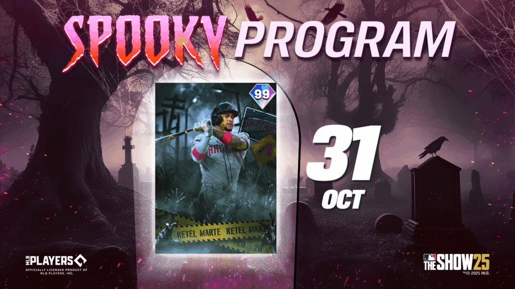 The Spooky Program reaches its fang-tastic finale today in MLB The Show 25. No need to go crying to your mummy though because today’s reward brings a bone-rattling bat-man to your lineup with Spooky Series Ketel Marte (99 OVR).