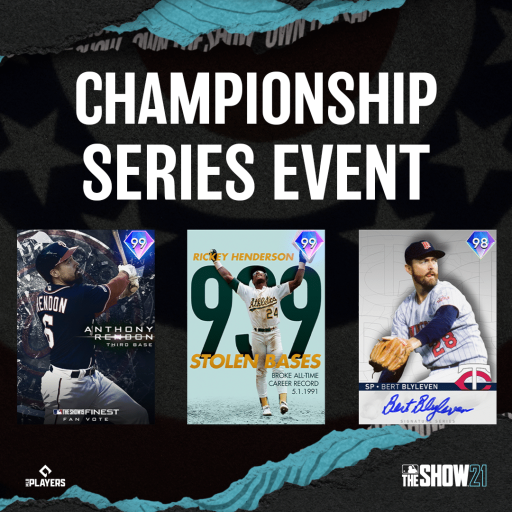 Add Signature Bert Blyleven, Finest Anthony Rendon, and Milestone Rickey Henderson to your roster by taking on Part 3 of 4 in the Postseason Events, now featuring the Championship Series Event in MLB The Show 21 .