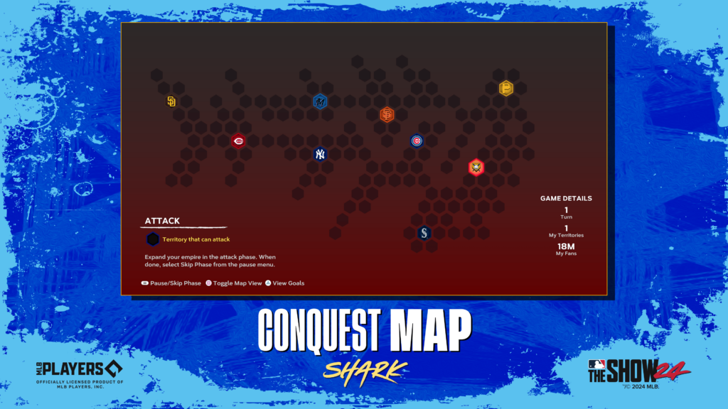 Just when you thought it was safe, the fan-favorite Shark Conquest Map returns! Take turns attacking territories, stealing opposing fans, reinforcing your territories, and moving your fans to take control in the Shark Conquest Map to earn the Shark Race Universal Profile Banner and Shark Universal Profile Icon, along with enough packs to drive any player into a frenzy including the 2024 Home Run Derby and All-Star Game Choice Packs.