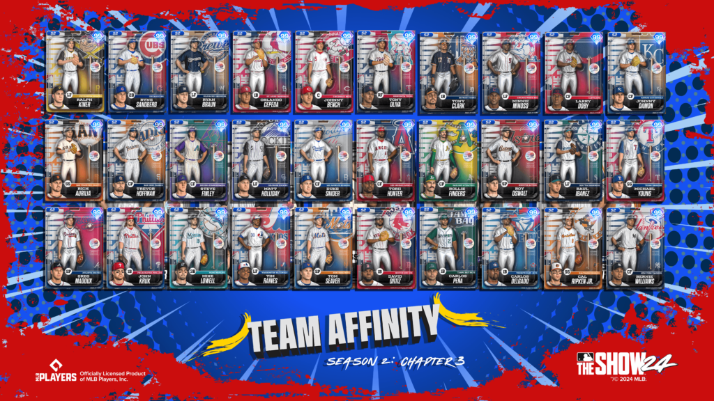Team Affinity Season 2: Chapter 3 brings even more action to MLB The Show with the all-new Action Figure Series. Complete Team Affinity tasks including Moments, Missions, and more to earn Action Figure Series player items representing each of the 30 MLB Clubs for your Diamond Dynasty squad.