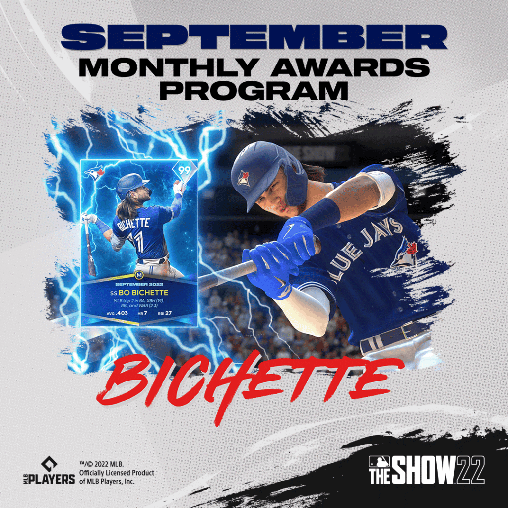 Bo Bichette nabs the September Monthly Awards Program Lightning player spot with a dazzling display of skills in the month of September. Complete Topps Now and Monthly Awards Moments, Missions and Collections to earn progress towards unlocking Lightning Bo Bichette and Lightning Legend Alfonso Soriano.
