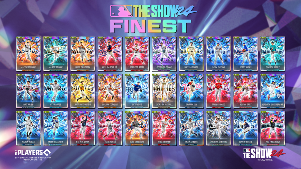 Get ready for your first look at MLB The Show 24’s 2024 Finest Series in Team Affinity Season 4: Final Chapter. The 2024 MLB season’s cream of the crop has made itself known and we’re rolling them out in the 2024 Finest Series showcasing some of the “Finest” player items representing each of the 30 MLB clubs.