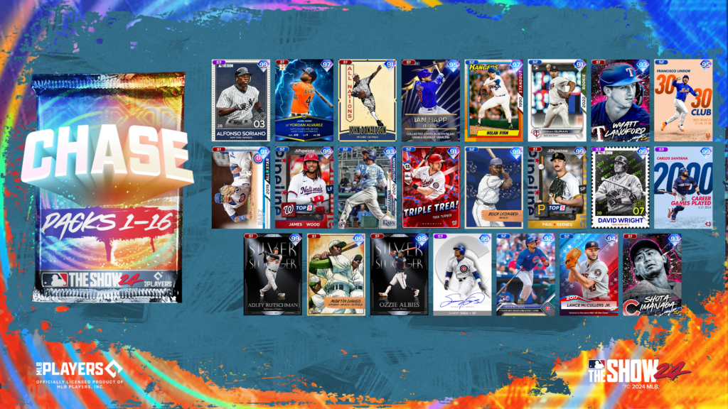 The Chase 1-16 Pack brings all of the Chase Pack player items of MLB The Show 24 and puts them all in one place. From All-Star Series Javier Baez and Hyper Series Shota Imanaga to Signature Series Sammy Sosa and Milestone Series Carlos Santana, and so many more, the Chase 1-16 Pack is your chance to get your mitts on any past Chase Pack rewards you might have missed.