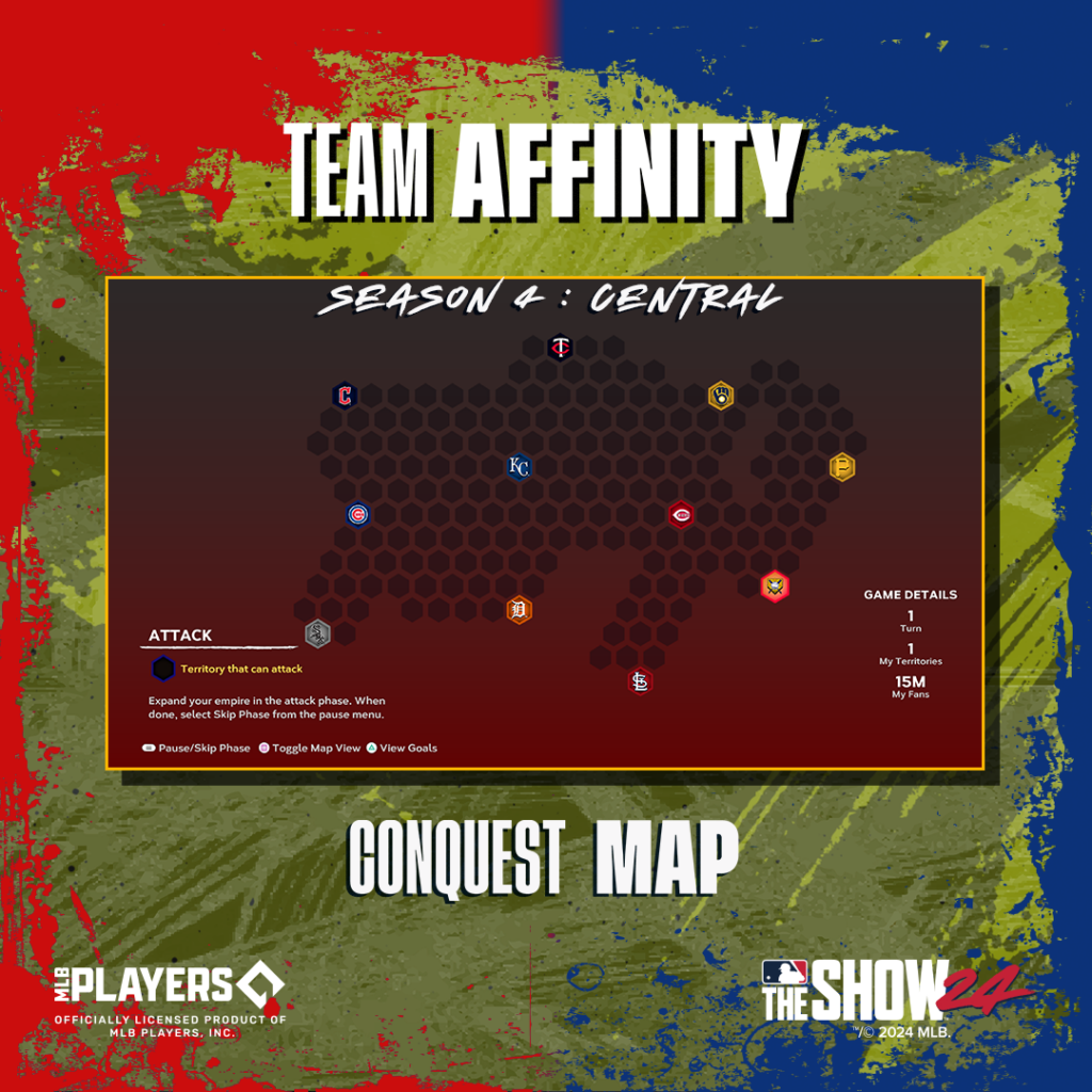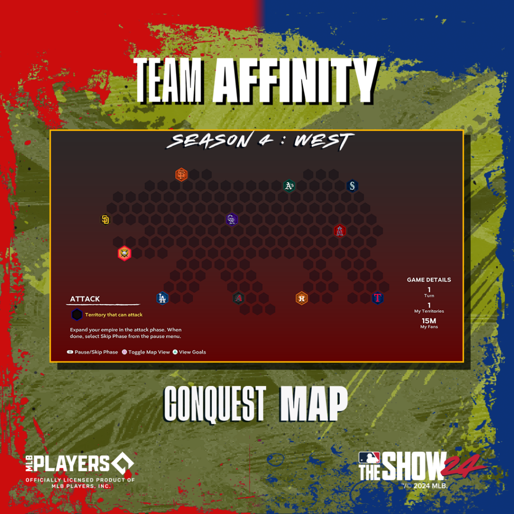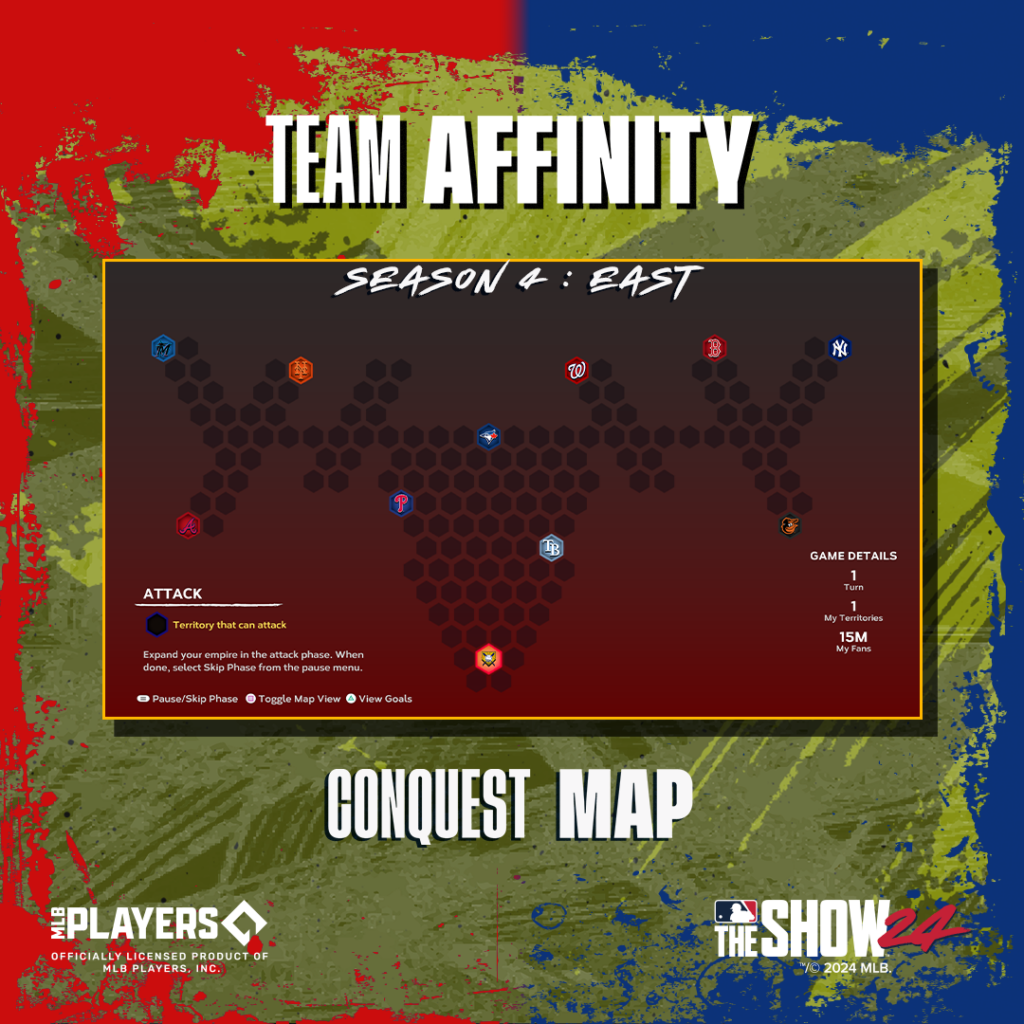 Try your hand at Moments featuring the Team Affinity Season 4: Final Chapter Finest Series Bosses from each division to start your progression in TA S4. Complete PXP, Multiplayer, and team-specific stat Missions to keep moving along the divisional programs’ reward paths. Play the TA S4 Conquest Maps, Showdowns, and March to October to continue earning TA Points. Exchange S4 Vouchers earned in Mini-Seasons, as well as player items from each of the respective divisions and continue advancing in the TA S4 Programs to add even more 2024 Finest Series players to your lineup in MLB The Show 24.