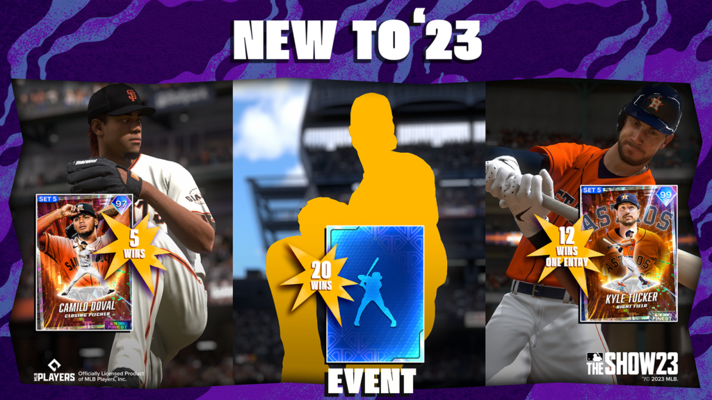 Starting today, the New to ’23 Event is your chance to earn even more 2023 Finest Series player items while experiencing, or re-experiencing, all the player item series that were introduced in MLB The Show 23 including the Charisma Series, Incognito Series, and Kaiju Series just to name a few. Earn 2023 Finest Series Camilo Doval at 5 wins, 2023 Finest Series Gerrit Cole at 20 wins, and 2023 Finest Series Kyle Tucker for earning 12 wins in one entry (12-1 or 12-0) before double elimination.