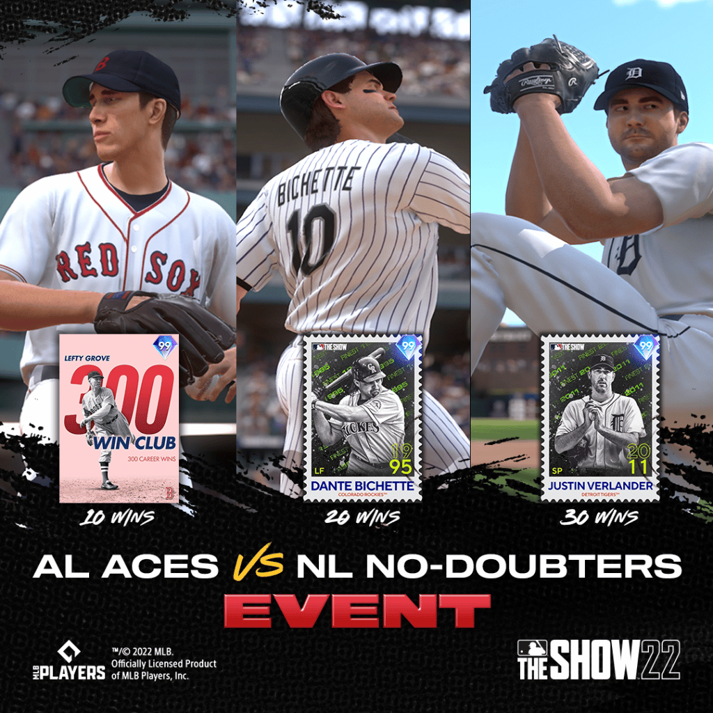 Add Milestone Lefty Grove (at 10 Wins), Retro Finest Dante Bichette (at 20 Wins), and Retro Finest Justin Verlander (at 30 Wins) to your lineup by trying your hand in the AL Aces vs. NL No-Doubters Event.