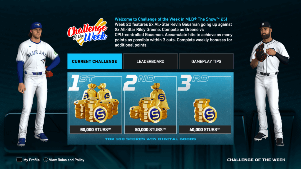 Challenge of the Week 20, available in Instant Action, features 2-time All-Star Kevin Gausman going up against 2-time All-Star Riley Greene. Compete as Greene vs CPU-controlled Gausman and accumulate hits to achieve as many points as possible within three outs for a chance to earn Stubs for use in MLB The Show 25.