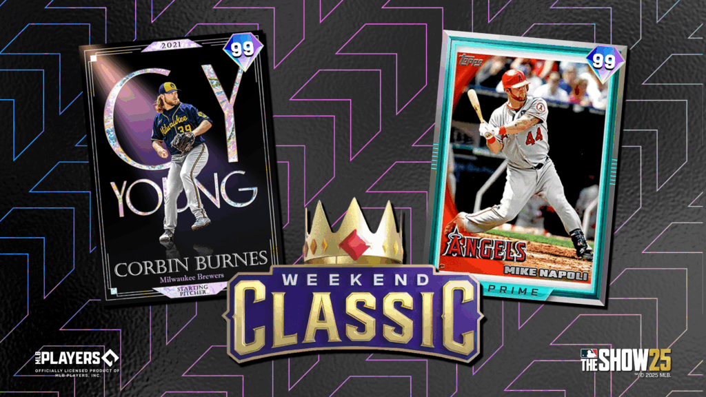 Weekend Classic 5, only available in MLB The Show 25, is live. Available in Ranked, Weekend Classic 5 pits you against other online players in your league, based on your Ranked Ratings, in 1-vs-1 (Solo) matchups to earn rewards and climb the Weekend Classic leaderboard. Secure a Top 10 spot to unlock even bigger and better rewards as you progress. Try to win as many games as you can in your first six Weekend Classic matchups, then keep playing to earn Packs, Stubs, and player items including Prime Series Mike Napoli (99 OVR) and Awards Series Corbin Burnes (99 OVR).