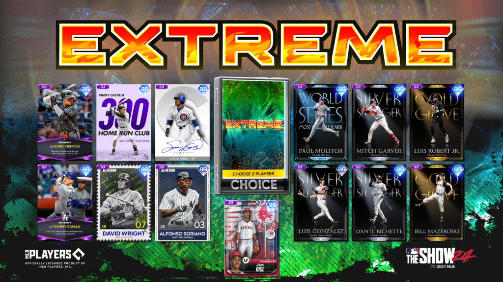 The fan-favorite Extreme Program is back and better than ever in MLB The Show 24. Get ready to get “Extreme” with some of the most challenging Moments and Missions, including PXP, General, Extreme Program player, & Event Missions, to start earning rewards like Finest Series Jorge Polanco (99 OVR) and Milestone Series Adam Ottavino (99 OVR). Take on the Extreme Showdown and Conquest Map for additional progression to add Finest Series Paul Goldschmidt (99 OVR) and Awards Series Jacob deGrom (99 OVR) to your lineup. Exchange Extreme Vouchers gathered in the Extreme Mini Season challenge to finish up your program progress and get your mitts on Awards Series Ronald Acuna Jr. (99 OVR).