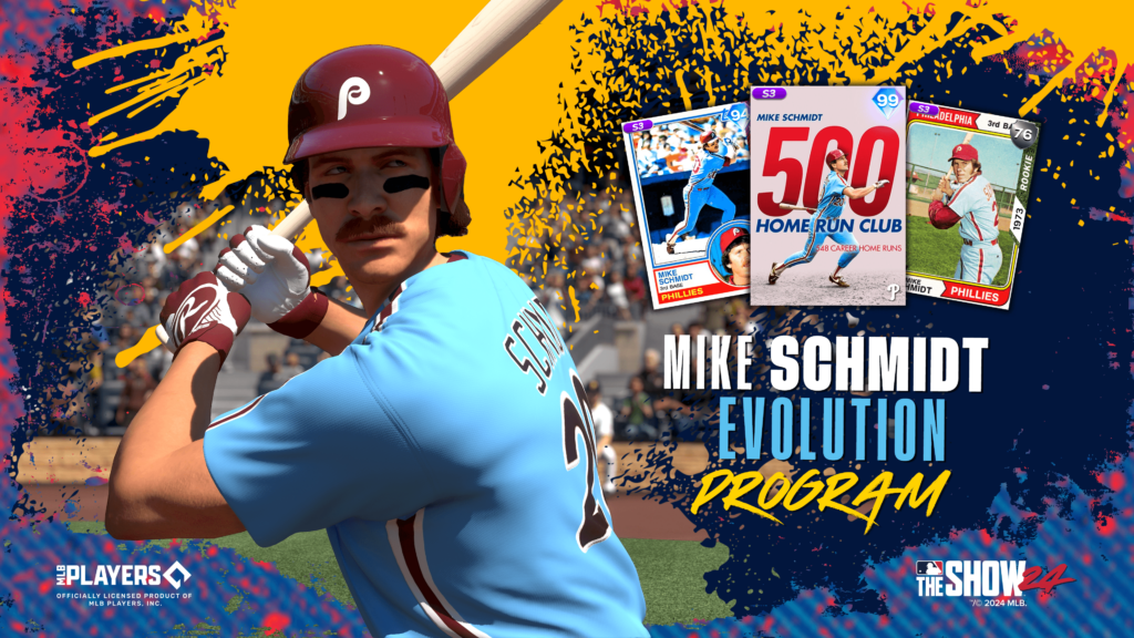 Relive some of the greatest plays from the career of the legendary Philadelphia Phillies Mike Schmidt starting today in the Mike Schmidt Evolution Program only available in MLB The Show 24. Arguably one of the, if not the, greatest 3rd baseman of all time, Schmidt’s 18-year MLB career with the Philadelphia Phillies garnered him 12 All-Star appearances, 10 Gold Glove Awards, 8-time placement as the NL Home Run Leader, 6 Silver Slugger Awards, and a World Series Championship…just to name a few of his accolades.