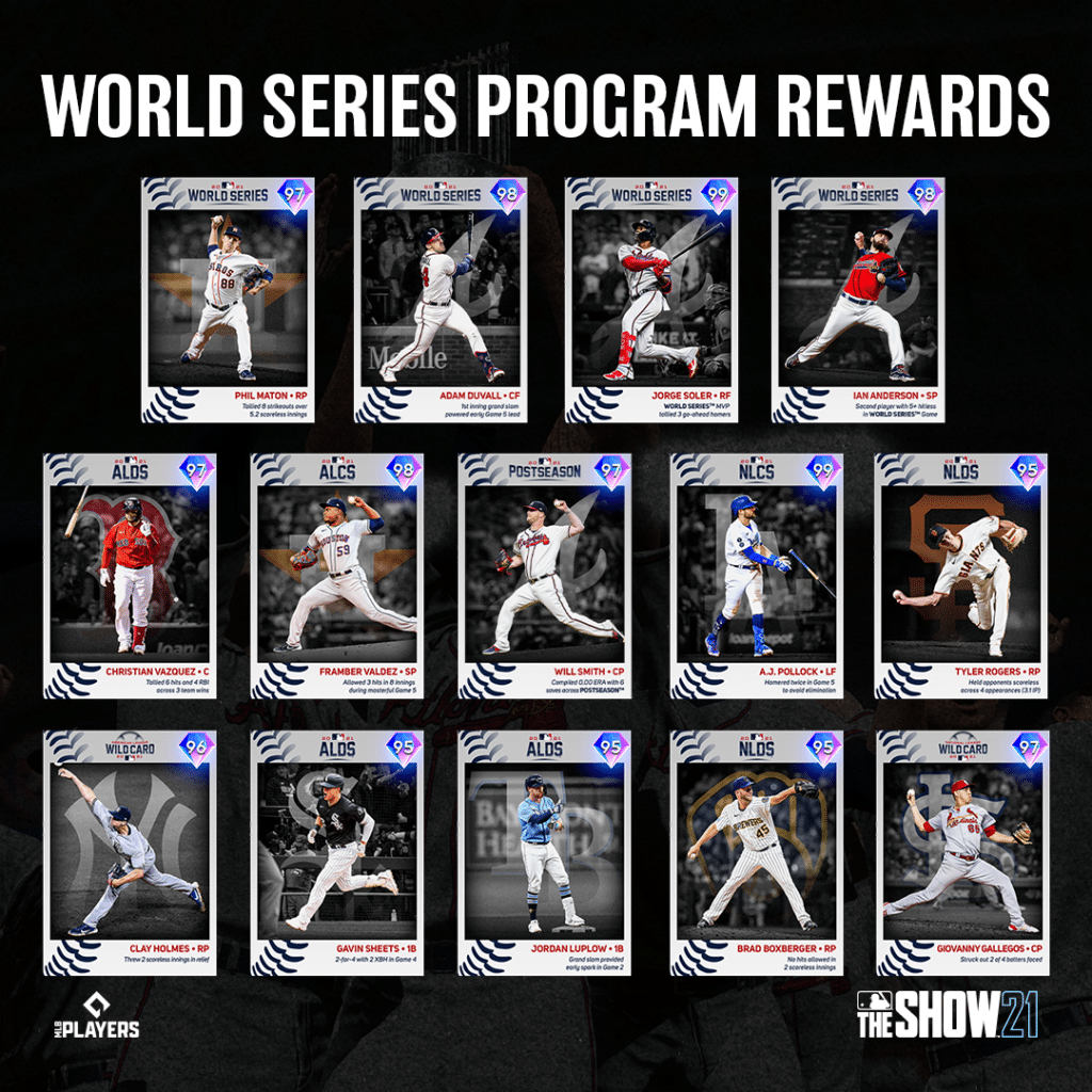 Congratulations to the Atlanta Braves for capturing their first World Series title since 1995! Relive all of the excitement of this year’s World Series by taking on brand-new Missions and Moments featuring the best players and plays in the World Series Program. Earn new player items, packs, Stubs, and more rewards that are sure to add championship appeal to your team in MLB The Show 21.
