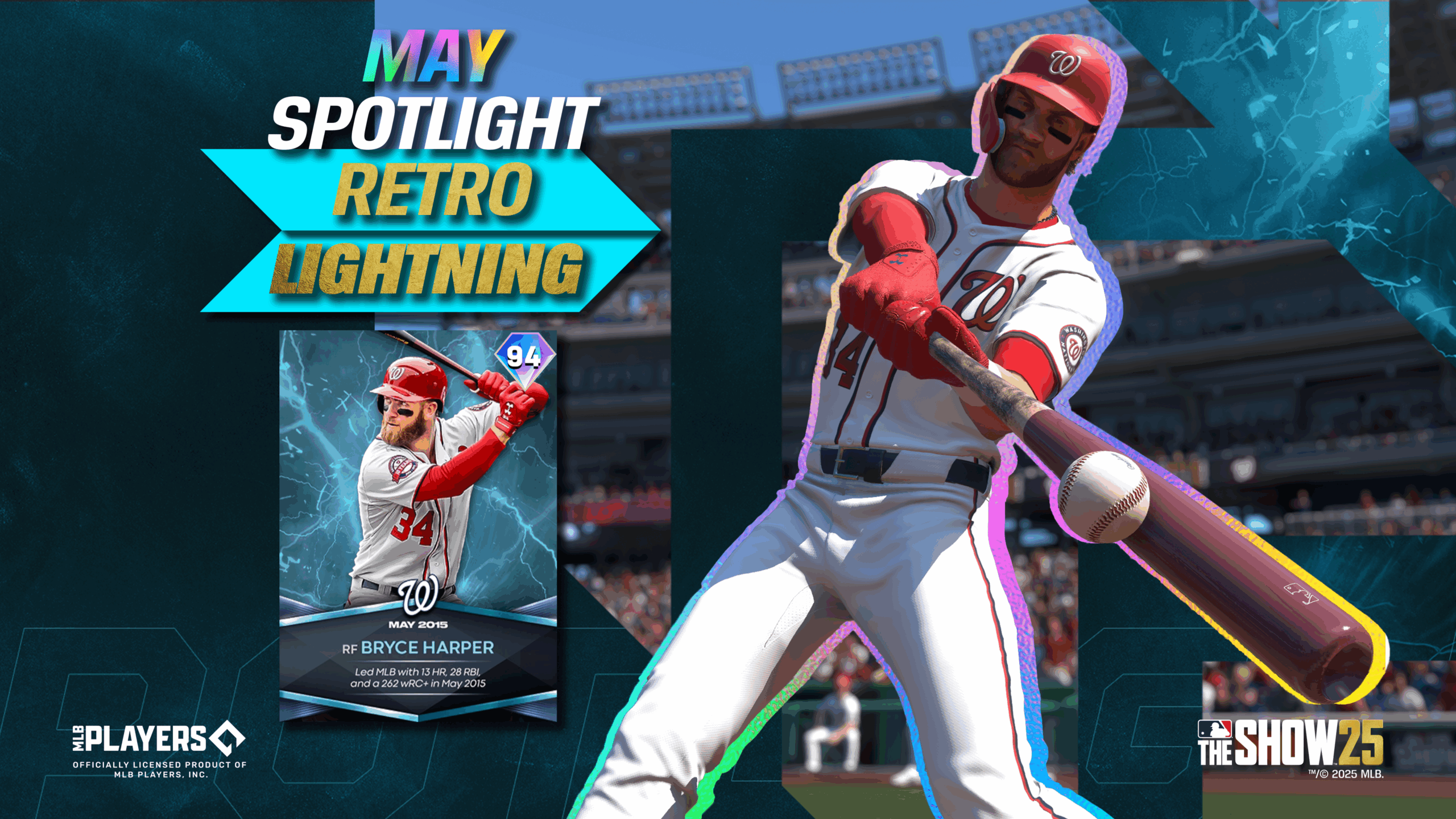 May Retro Lightning Bryce Harper proves lightning does strike the same place twice in MLB The Show 25. In May of 2015, Harper led the MLB with 13 HR, 28 RBI, 262 wRC+, in addition to setting a Washington Nationals club record, which stood until 2021, for most home runs in a single month.