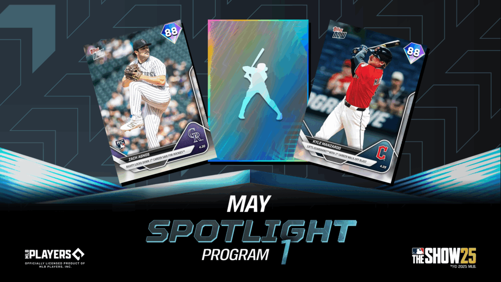 Play these Moments and more, complete Drop 1 PXP & Stat Missions, the Lightning Collections, as well as the Optional Spotlight Pack Collections featuring Topps Now Series and Spotlight Series player items, and earn progress in the May Spotlight Program – Drop 1 to add the the following players to your roster and earn a sellable May Spotlight Pack – Drop 1:
