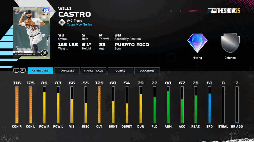 Chase Pack 9 features 2024 All-Star – Topps Now Series Willi Castro (93 OVR)