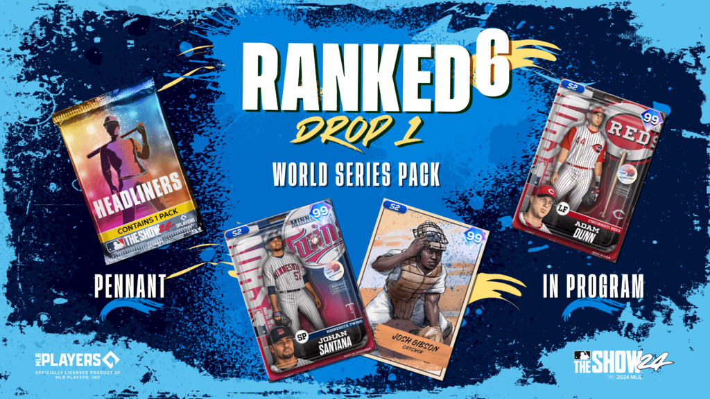 Complete Solo & Co-Op Ranked Innings and Stat Missions in the Ranked 6 Program – 1st Drop to earn Action Figure Series Adam Dunn (99 OVR) at 75 Stars. Increase your rating to reach the World Series division and earn the World Series Reward Choice Pack to choose from Jin Kim Series Josh Gibson (99 OVR) and Action Figure Series Johan Santana (99 OVR).