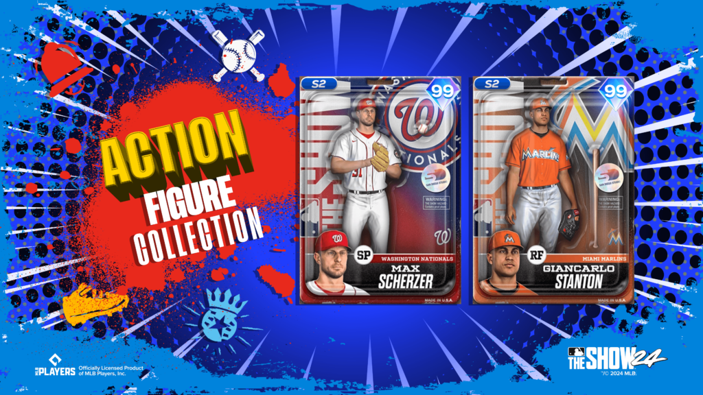 Collect the Action Figure Series player items to earn more Action Figure Series players! Collect 20 to unlock Max Scherzer (99 OVR), and collect 30 to unlock Giancarlo Stanton (99 OVR) available today in MLB The Show 24.