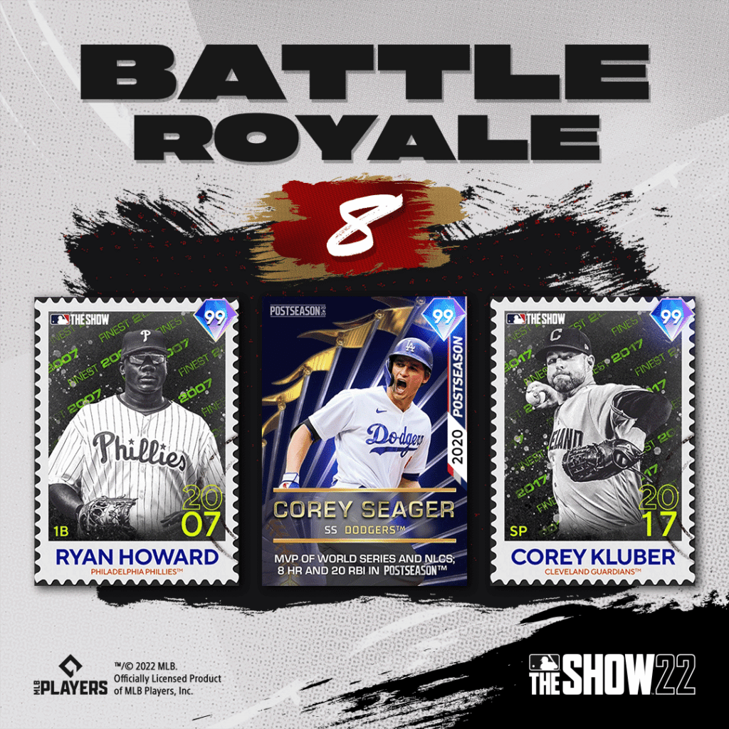 Take a swing at Battle Royale (BR) 8, available now in MLB The Show 22, to earn some amazing rewards. Draft your team, then take on other online players in 3-inning games. Earn 90 BR Points in the program to pick-up Retro Finest Ryan Howard (99 OVR) from the reward path.
