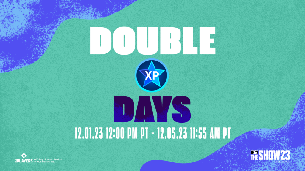 Starting today and lasting until Tuesday, December 5th at 11:55 AM PST, earn 2X XP, from gameplay in any mode in MLB The Show 23, towards the Season 5 XP Reward Path during Double XP Days.