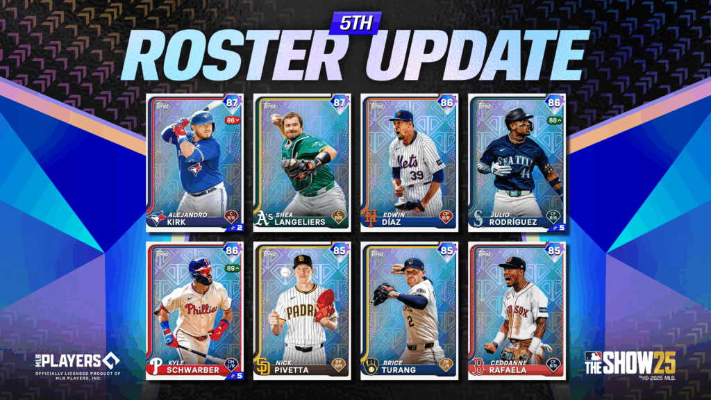 Today’s MLB The Show 25 content update includes the 5th Roster Update focuses on Pitch Type, Fielding, and Speed Attributes updates in addition to our usual Pitching and Hitting Attributes updates, bringing over 980+ players updates consisting of 780+ MLB Player and 200+ MiLB adjustments, as well as the following new Diamonds and Golds: