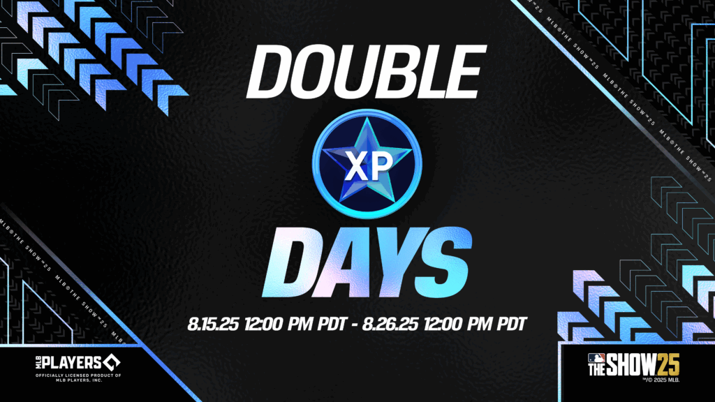 Starting today, earn 2x XP in any mode during Double XP Days, available until Friday, August 22nd at 12 PM PT in MLB The Show 25. Earn 2x XP from playing in any game mode to unlock any remaining rewards in the 6th Inning XP Reward Path in preparation for the upcoming 7th Inning XP Reward Program.
